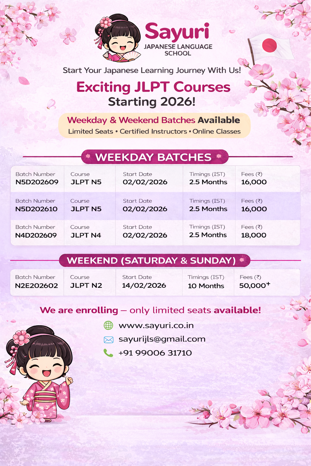 The JLPT N5 (Japanese Language Proficiency Test Level N5) course is designed for absolute beginners who wish to build a strong foundation in Japanese language and prepare for the official JLPT N5 examination.